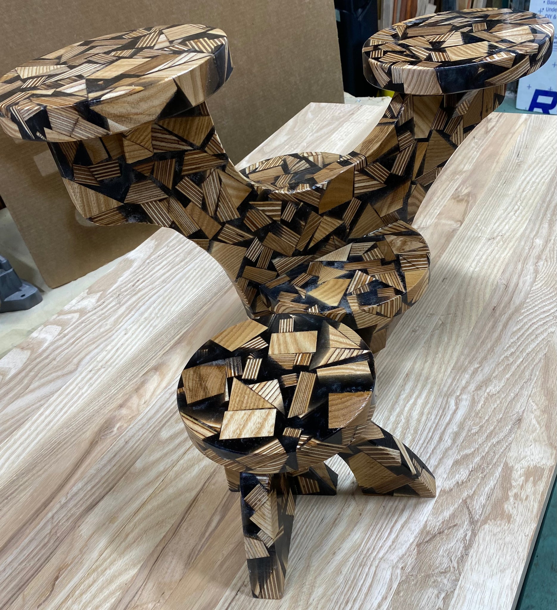Black resin and appleply plant stand set, 2 pieces.